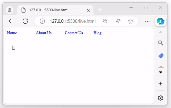 執行上述程式後,它將顯示四個連結。當滑鼠指標進入或離開顯示的連結時,將自動向連結新增或刪除“demo”類,如下面的 GIF 所示:
