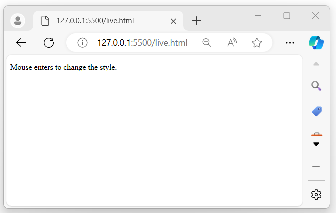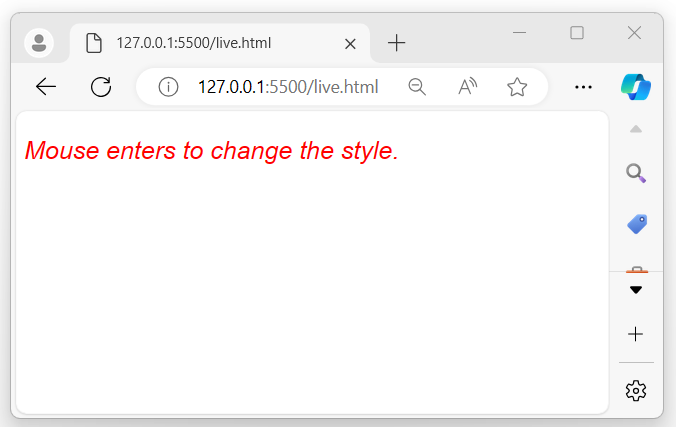 執行上述程式後,當滑鼠指標進入選定元素時,它會顯示一條訊息,並且樣式將相應更改: