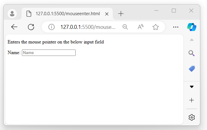 執行以上程式後,將顯示一個輸入欄位,當滑鼠指標進入輸入元素時: