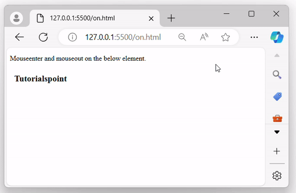 以下是 jQuery 事件on() 方法的另一個示例。我們使用此方法為選定的 div 元素繫結多個事件: