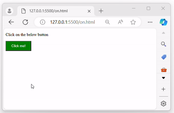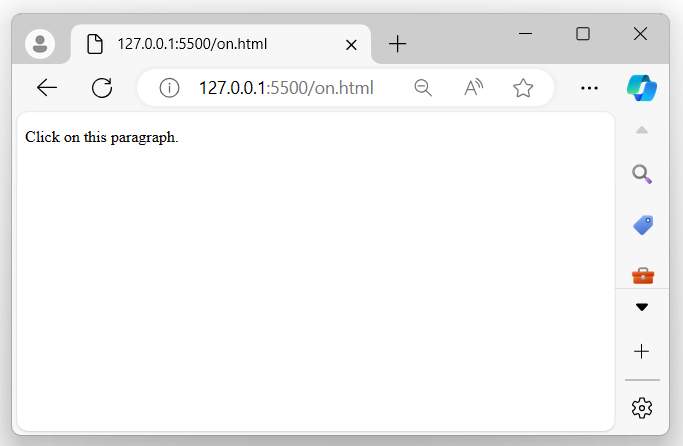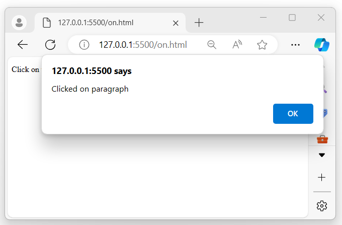 上述程式顯示一段文字,當滑鼠指標單擊它時,瀏覽器螢幕上會出現一個彈出警報: