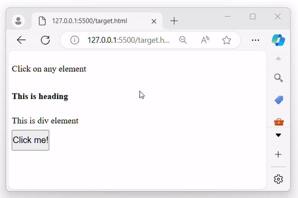 程式執行後,它將顯示一個<p>、<h1>、<div>和一個<button>元素。當用戶點選這些元素中的任何一個時,將顯示由標籤名稱觸發的事件: