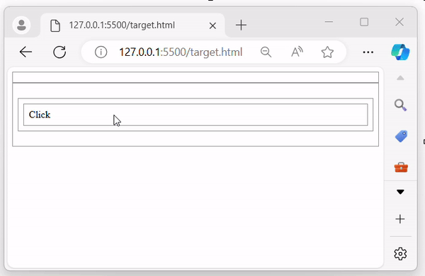 執行上述程式後,將顯示類似於事件冒泡的介面。當用戶點選任何元素時,該元素的標籤名稱將顯示在另一個 div 中: