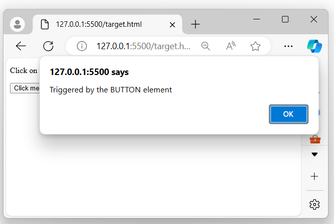 上述程式顯示一個按鈕。單擊時,元素的標籤名稱將顯示在彈出警報中: