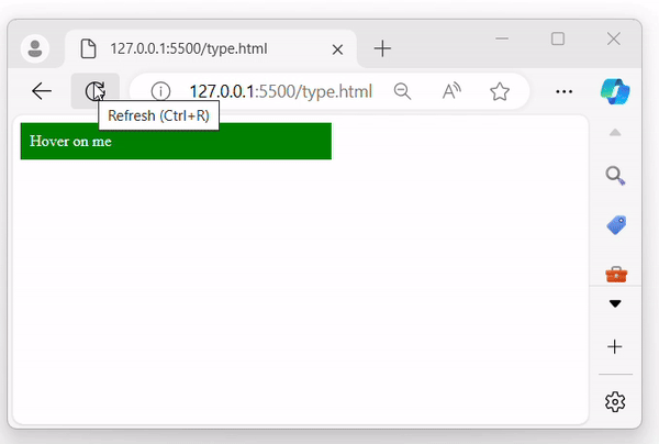 程式執行後,將顯示一個具有綠色背景的框。當滑鼠指標懸停在此框上時,事件型別將顯示在其旁邊: