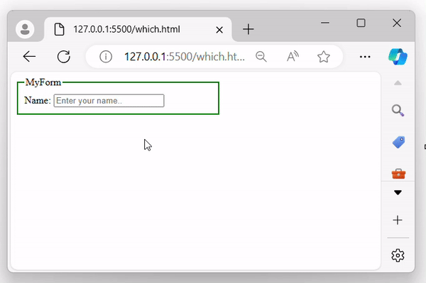 執行上述程式後,它將顯示一個包含輸入框的表單,當用戶開始在輸入框中輸入內容時,其旁邊將顯示相應的按下鍵: