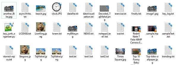 因此,我們有一個目錄路徑,其中存在許多不同型別的檔案(如下所示),我們的程式會將每種檔案型別分類到各自的資料夾中(如下所示)。