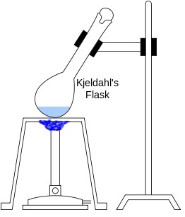 **凱氏定氮法**是一種用於測定特定物質中氮含量的定量方法。凱氏消化也是它的另一個名稱。之所以這樣命名,是因為該過程包含一個消化步驟。使用催化劑會提高消化速率。使用的催化劑是氧化汞。它效率很高,但是一種有毒化學物質。後來引入了硫酸銅催化劑,但效率較低。現在,二氧化鈦被用作催化劑。此方法測量有機和無機物質中存在的氮含量。它也可用於測定蛋白質含量。