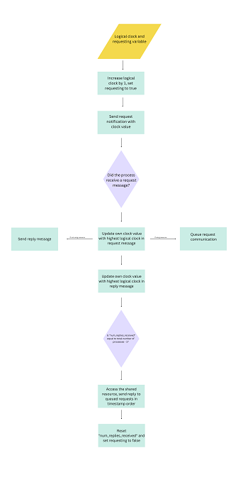 每個程序維護一個最初設定為0的邏輯時鐘,以及一個布林變數requesting,表示該程序是否希望訪問共享資源。