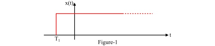 如果訊號 $\mathit{x}\mathrm{\left(\mathit{t}\right)}$ 在 t < $\mathit{T}_{\mathrm{1}}$ 時為 0,其中 $\mathit{T}_{\mathrm{1}}$ 為某個有限時間(如圖 1 所示),則稱訊號 $\mathit{x}\mathrm{\left(\mathit{t}\right)}$ 為右側訊號。