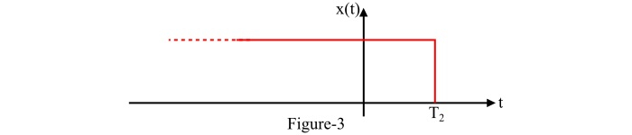 如果訊號 $\mathit{x}\mathrm{\left(\mathit{t}\right)}$ 在 t > $\mathit{T}_{\mathrm{2}}$ 時為 0,其中 $\mathit{T}_{\mathrm{2}}$ 為某個有限時間(如圖 3 所示),則稱訊號 $\mathit{x}\mathrm{\left(\mathit{t}\right)}$ 為左側訊號。