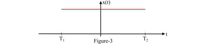 如果訊號 $\mathrm{\mathit{x\left ( t \right )}}$ 在 $\mathrm{\mathit{t< T_{\mathrm{1}}}}$ 和 $\mathrm{\mathit{t> T_{\mathrm{2}}}}$ 時 $\mathrm{\mathit{x\left ( t \right )}}$ = 0,則稱其為有限持續時間訊號,其中 $\mathrm{\mathit{T_{\mathrm{1}}}}$ 和 $\mathrm{\mathit{T_{\mathrm{2}}}}$ 是某些有限的時間瞬間,如圖 3 所示。