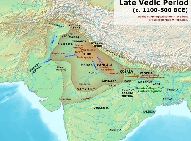 圖1 − 公元前1100年至公元前500年晚期吠陀時期印度 Avantiputra7, 晚期吠陀文化 (公元前1100-500年), CC BY-SA 3.0