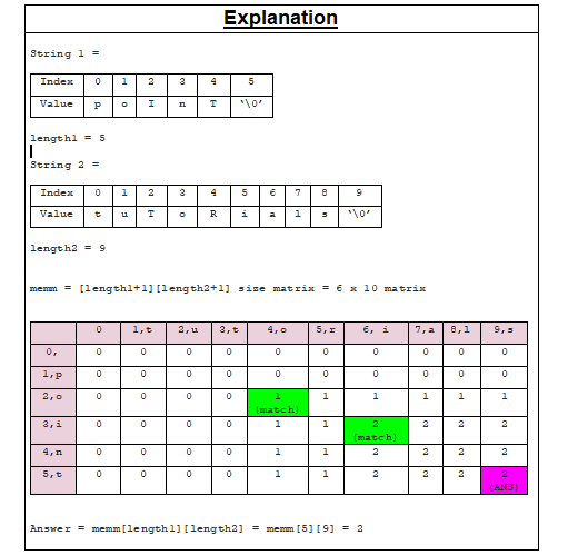 memm[idx_1][idx_2] = 1 + memm[idx_1-1][idx_2-1];