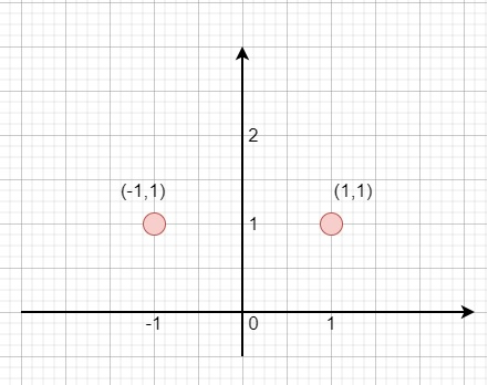 因此,如果輸入為 points = [[1,1],[-1,1]]