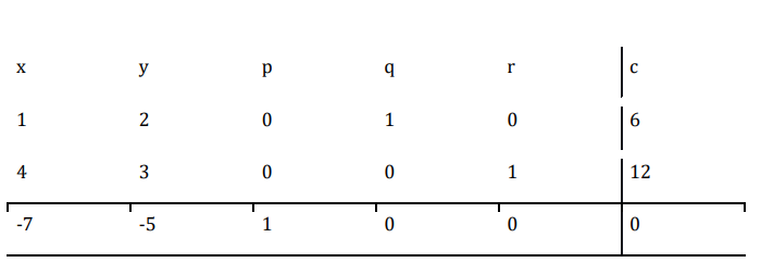 步驟 2 − 構造初始單純形表並將目標函式寫為底行。