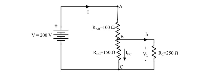 $$\mathrm{V_{L}=V×\frac{R_{BC\:eq}}{R_{eq}}= 200 ×\frac{93.75}{193.75}= 96.77 Ω}$$