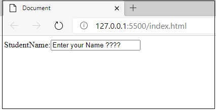 <label for="name">StudentName:<input name="name" id="studentName" value="Enter your Name ????" class="guess"></label>