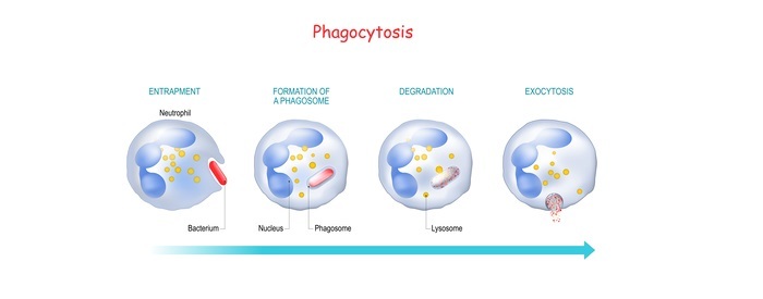 吞噬作用是專業吞噬細胞吞噬和消化外來顆粒(如細菌、病毒和細胞碎片)的過程。吞噬作用的過程涉及一系列協調事件,使識別、吞噬和降解外來顆粒成為可能。其中包括 -