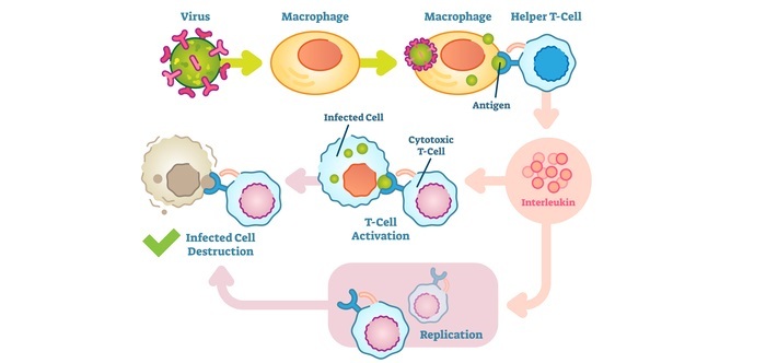 細胞毒性T細胞識別並破壞受感染的細胞,