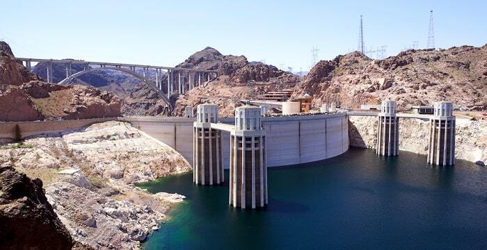 胡佛水壩位於內華達州和亞利桑那州的邊界,裝機容量為2080兆瓦。