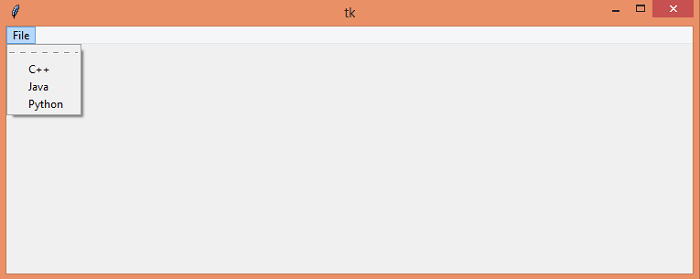可以透過在應用程式中初始化 Menu(父級)例項來建立 Tkinter 中的選單欄。我們可以在 add_command 的位置新增複選框,以擴充套件任何應用程式中選單欄的功能。