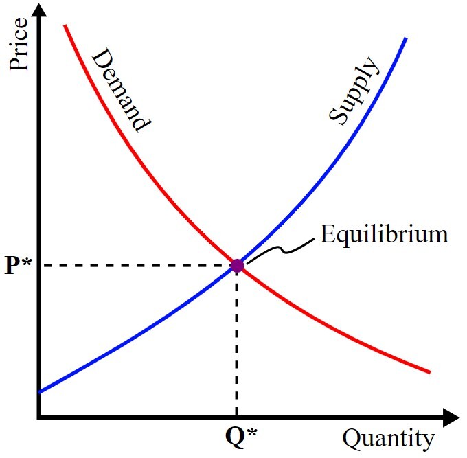 通常,市場均衡用價格來表示。市場供求相遇的價格稱為均衡價格。市場均衡價格至少有兩個容易識別的應用。這些應用非常重要,因此我們可以理解市場均衡是經濟學中一個非常重要的概念。