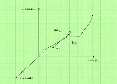 在這種情況下,物體的動量根據其沿三個軸的分量給出$\mathrm{\overrightarrow{p}\:=\:mv_{x}\:+\:mv_{y}\:+\:mv_{z}}$ 其中 𝑚𝑣𝑥、𝑚𝑣𝑦 和 𝑚𝑣𝑧 表示沿 x、y 和 z 軸動量的大小