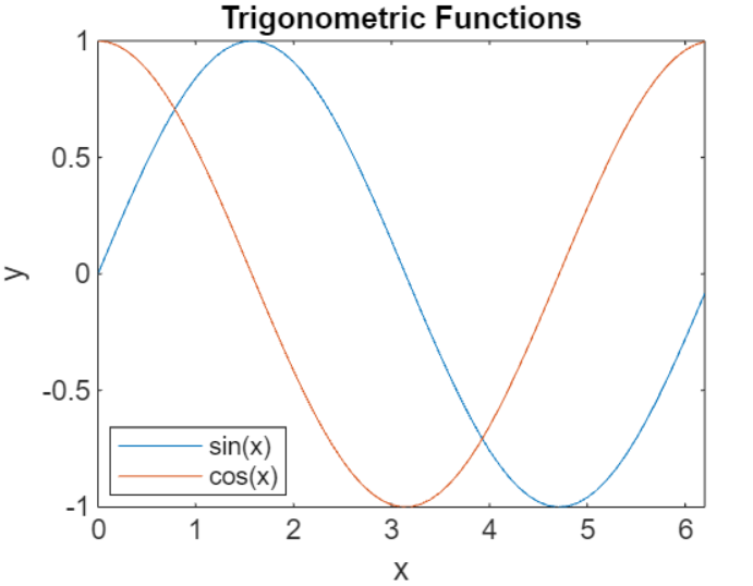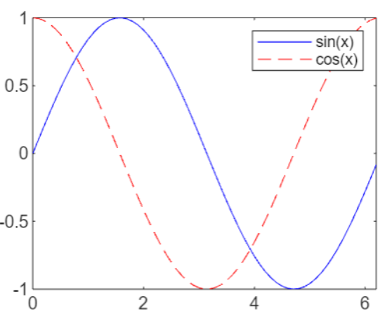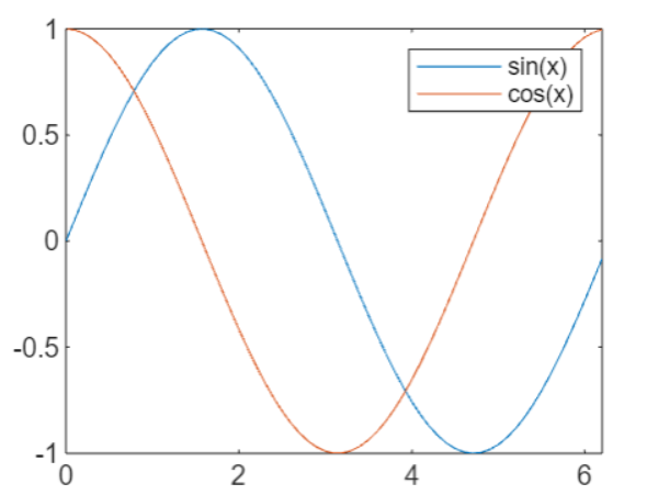 legend(ax, {'sin(x)', 'cos(x)'}, 'Location', 'best');