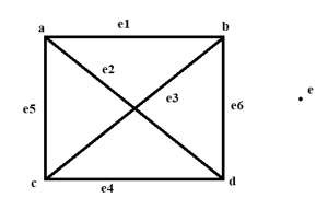 對於給定的5個頂點和6條邊,正方形是一個多邊形,它有6條邊和2條對角線,因此只有4個頂點被佔用。1個頂點成為孤立頂點,這是最大值。