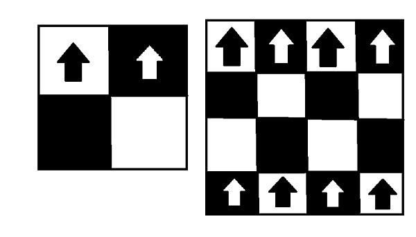 說明 - 如上所示,唯一不矛盾的位置是放置主教的位置。2X2 棋盤上最多可放置兩個主教。