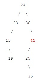 如果陣列為 {24, 23, 15, 36, 19, 41, 25, 35},我們可以形成如下所示的 BST −