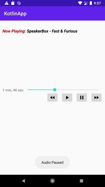 Toast.makeText(applicationContext, "Audio Paused", Toast.LENGTH_SHORT).show()