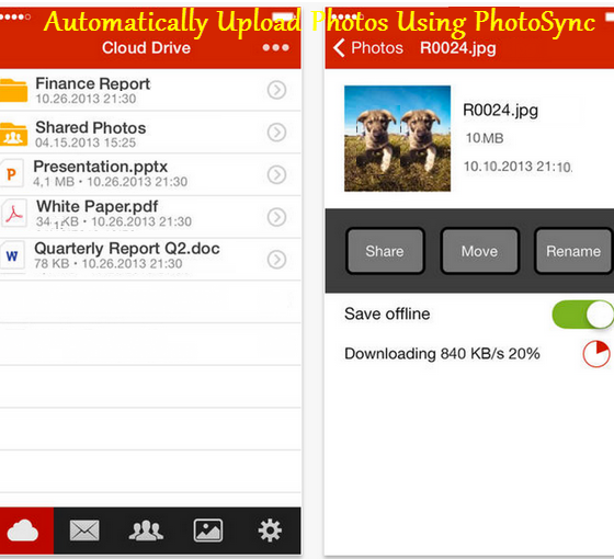 照片同步正如其名,它使使用者能夠使用他們的 MEGA 帳戶非常輕鬆地同步他們的照片。MEGA 正在逐漸成為 SkyDrive 和 Dropbox 的替代品。照片同步會自動將相機膠捲上傳到 MEGA。照片同步已成為類似於 Google+ 和 Dropbox 的自動照片備份的最佳選擇。使用照片同步,使用者使用 iPhone 拍攝的照片將自動備份到 MEGA。