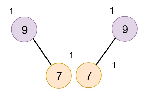 現在讓我們看看如何合併。假設 7 被新增為 9 的右子節點,但是此處,9 的 s(L) 為 0,而 s(R) 為 1,因此它們將被交換,並且 7 將成為其右子節點。