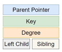 **父節點指標**:它將儲存父節點的地址,以便將其連結到二項堆結構中的其他節點。