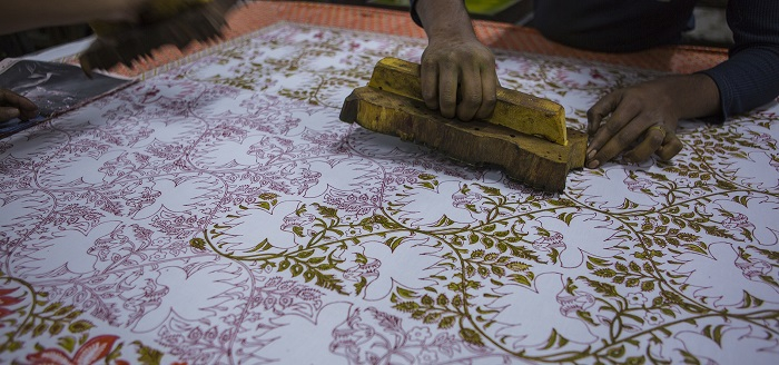 印花是一種技術,透過將木塊切割成所需的形狀或組裝金屬條、釘子和其它材料來建立圖案。在將木塊壓在織物上之前,木塊的圖案表面塗上印花漿。重複此過程,使用不同的圖案和顏色,直到圖案完成。印花已經使用了幾個世紀,並且在許多亞洲國家仍然很流行,因為它可以由人們在業餘時間在家中完成。
