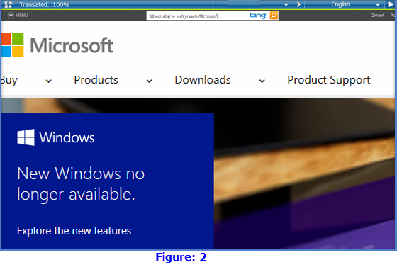 下圖2顯示了使用 Microsoft Translator Bookmarklet 的 Microsoft 網站。