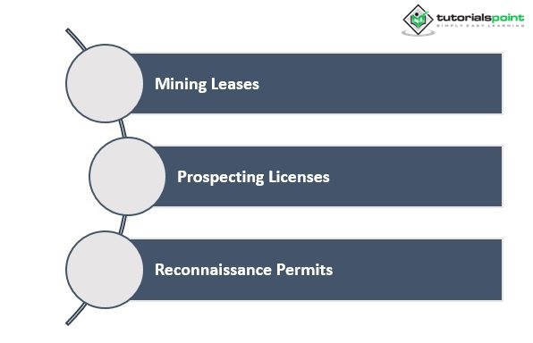 根據1957年礦產(開發與管理)法和1960年礦產特許規則的要求,州政府為位於該州邊界內的任何礦產提供採礦許可證,也稱為礦產特許權。因此,制定了關於頒發不同型別礦產特許權的規定。礦產特許權主要有三種類型。