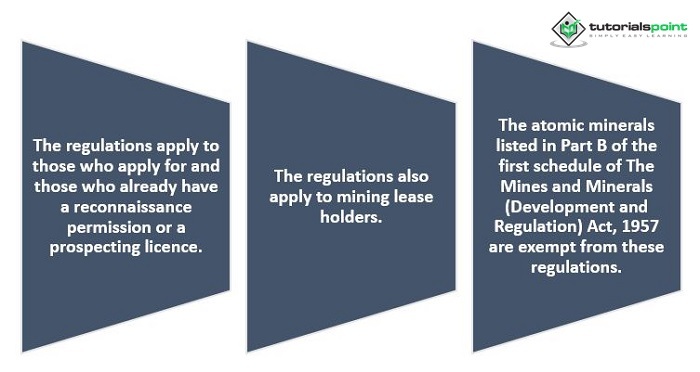 1960年礦產特許規則的制定是為了管理和規範勘探和偵察許可證的頒發。採礦租賃也受這些規定的約束。這些規則是根據1957年礦產(管理與開發)法第13條授予的權力起草的。中央政府制定與頒發許可證和採礦租賃相關的規則。