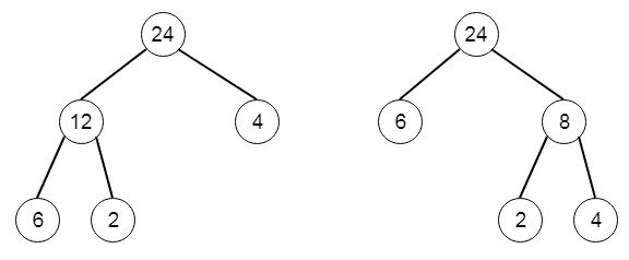 - 每個非葉子節點的值等於其左右子樹中最大葉節點值的乘積。