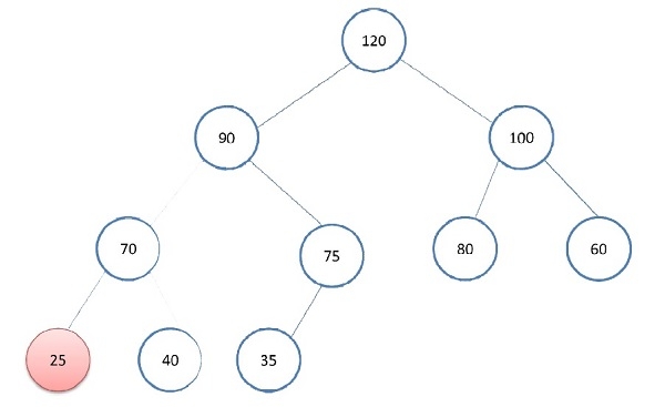 int heap[] = {120, 90, 100, 70, 75, 80, 60, 25, 40, 35};