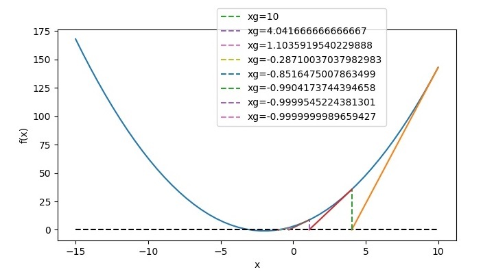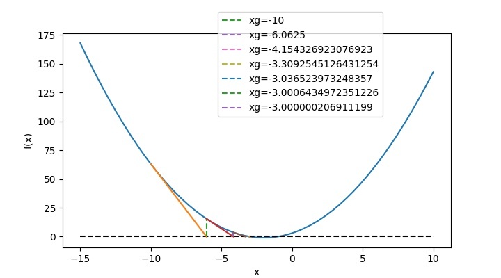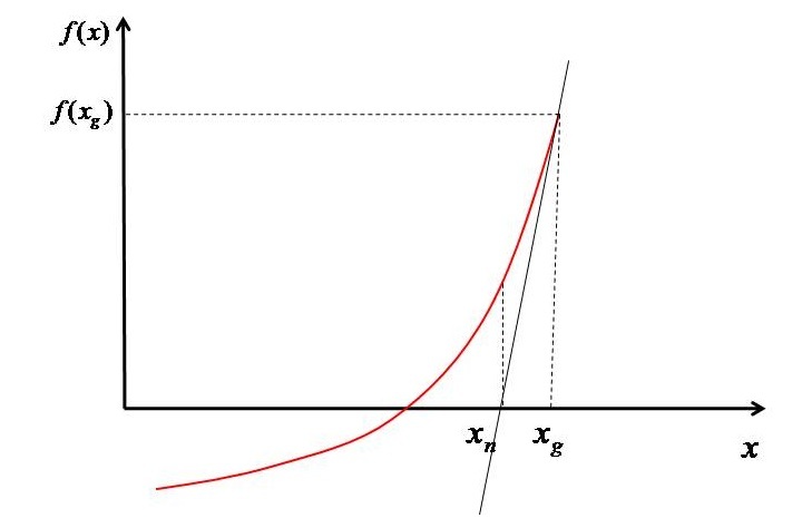 $$\mathrm{x_{n}=x_{_{g}}-\frac{f\left ( x_{g} \right )}{f^{'}\left ( x_{g} \right )}}$$
