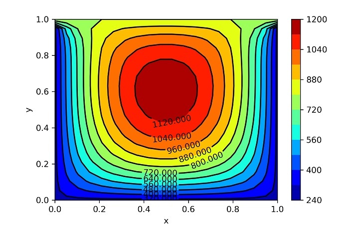 在本教程中,二維熱傳導方程已在Python中建模。有限差分法已被用於解決兩個問題:一個是有熱量產生,另一個是無熱量產生。已經觀察到,程式碼中採用的熱量產生大小對最終穩態解的影響不大。