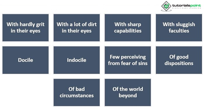 在獲得解脫之後,苦行僧喬達摩被稱為佛陀。佛陀為了出於慈悲傳播佛法,首先考察了世界。 《中部》的《阿利耶婆利耶蘇達》描述了佛陀如何看待具有許多正面和負面特質的眾生,包括: