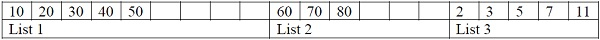 當我們想要儲存多個列表時,我們可以共享一些更大的陣列,而不是為新列表建立新的陣列。單個數組中的多個列表將如下所示: