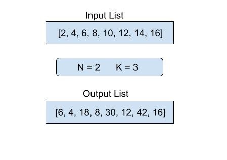 我們面臨的問題是,必須將一個稱為 K 的特定值乘以給定列表中的每個第 N 個專案。通常,我們會建立一個函式來應用於列表的每個專案,但在這裡,在我們的問題中,我們必須將一個常數乘以列表中的一些專案。為了更好地理解,讓我們深入研究下面的示例