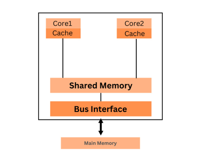 多處理器系統可以利用分散式記憶體或共享記憶體。在共享記憶體多處理器中,每個處理器共享主記憶體和外設以同時執行指令。在這些系統中,所有 CPU 透過單個匯流排訪問主記憶體。隨著匯流排流量的增加,大多數 CPU 將處於空閒狀態。這種型別的多處理器也稱為對稱多處理器。它允許每個 CPU 訪問單個記憶體區域。