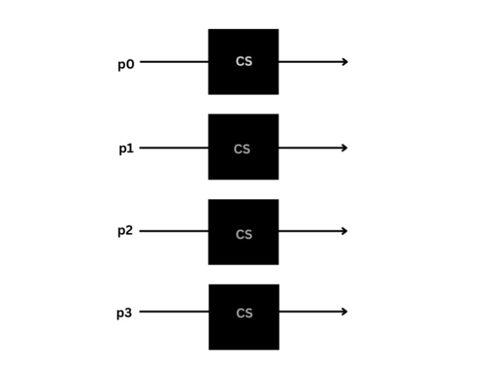 分散式方法 - 在分散式方法中,程序或節點無需中心協調器即可協作以實現彼此之間的互斥。分散式互斥有多種演算法,包括Ricart-Agrawala演算法、Maekawa演算法和Lamport麵包店演算法。這些演算法通常使用一組規則和程序之間的訊息交換來決定哪個程序應該首先訪問關鍵資源。處理網路延遲、錯誤以及在參與程序之間保持一致性是這些演算法中的一個重要挑戰。