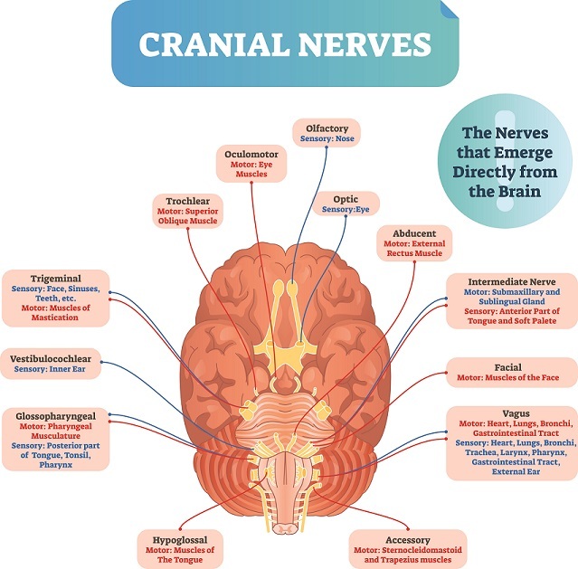 腦神經是一組 12 對神經,直接從大腦發出,負責控制頭部、頸部和麵部的各種功能。這些神經從前到後按順序編號為 I 到 XII。讓我們詳細討論每一條神經。